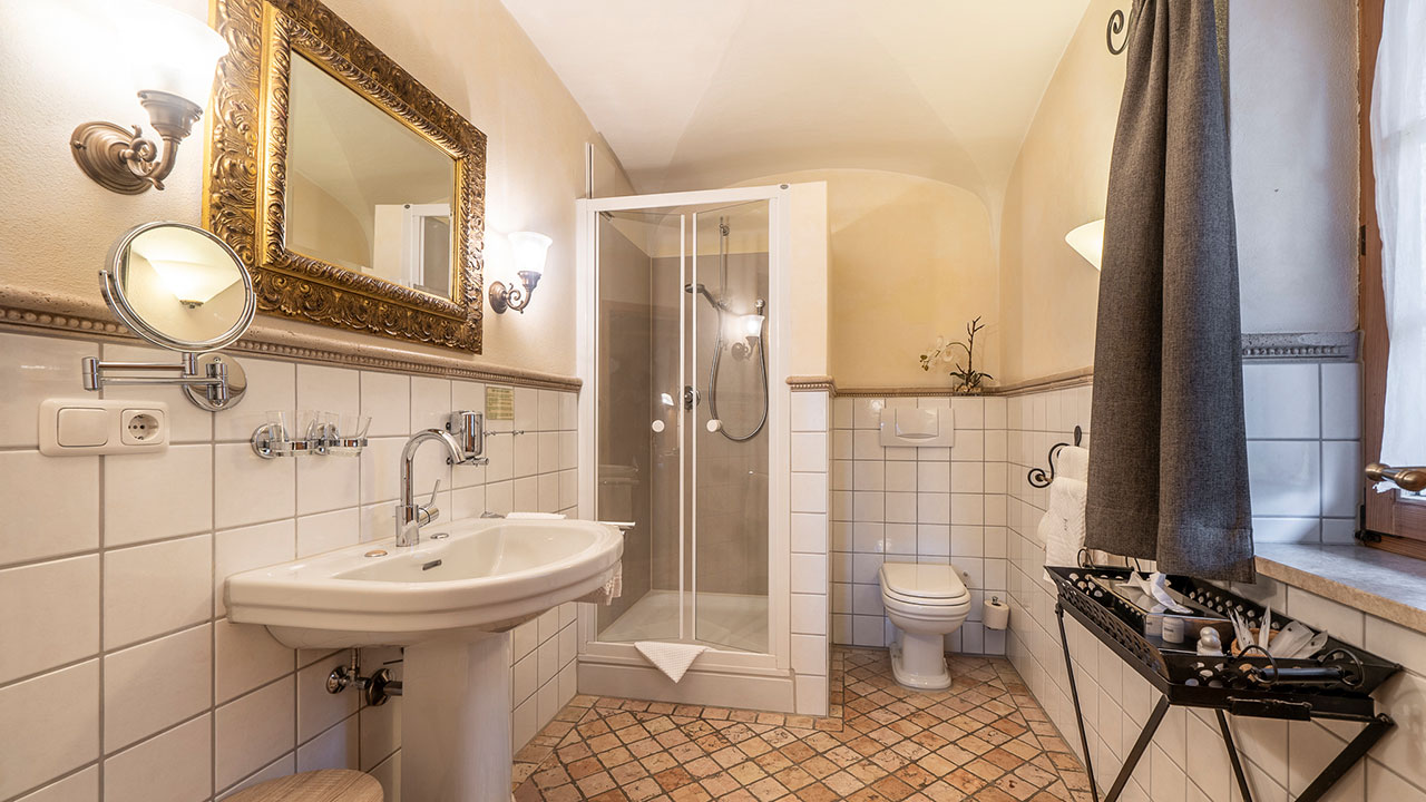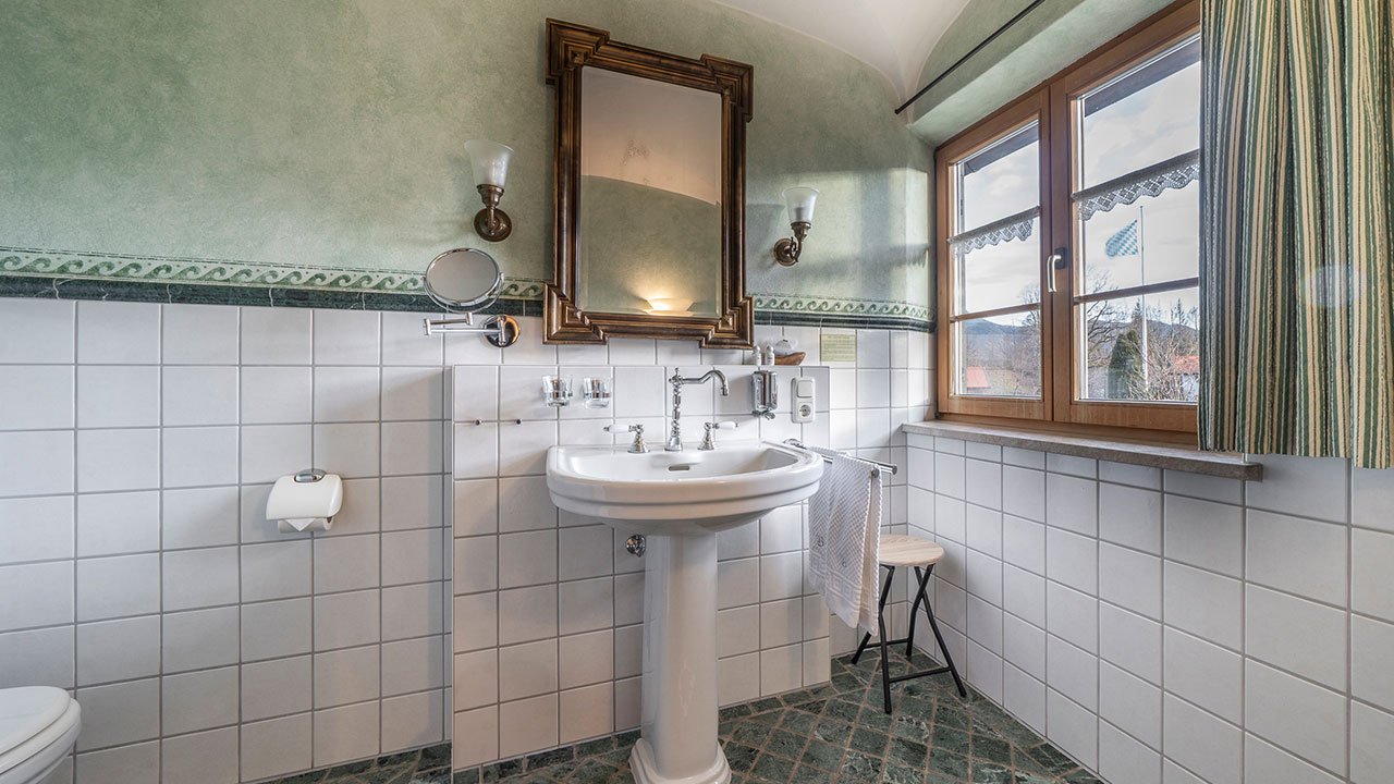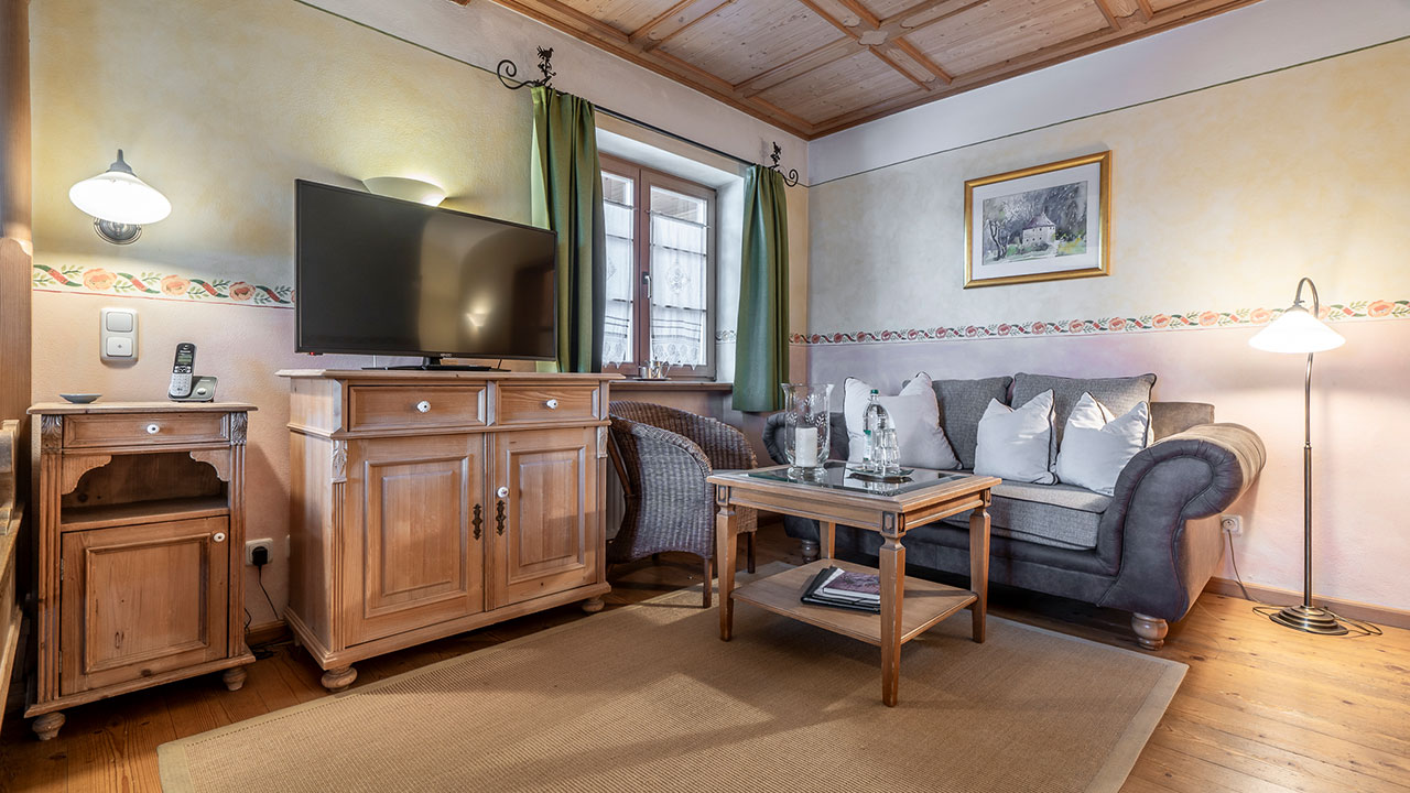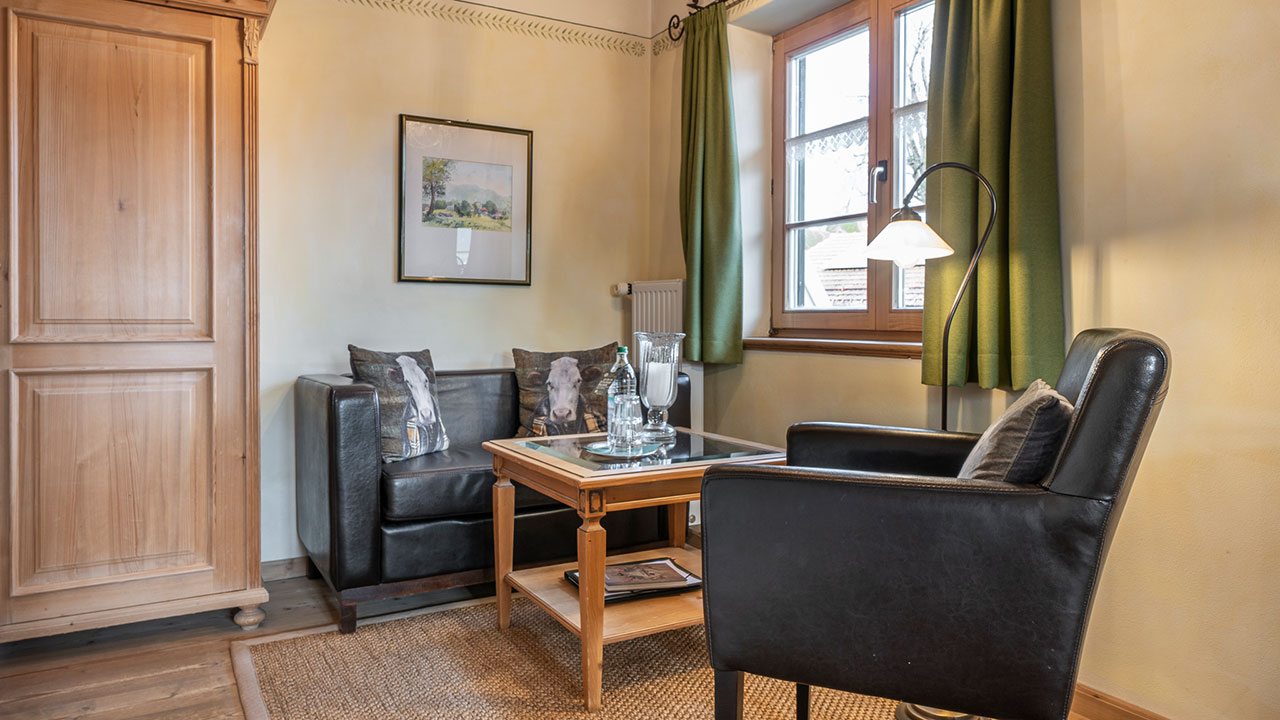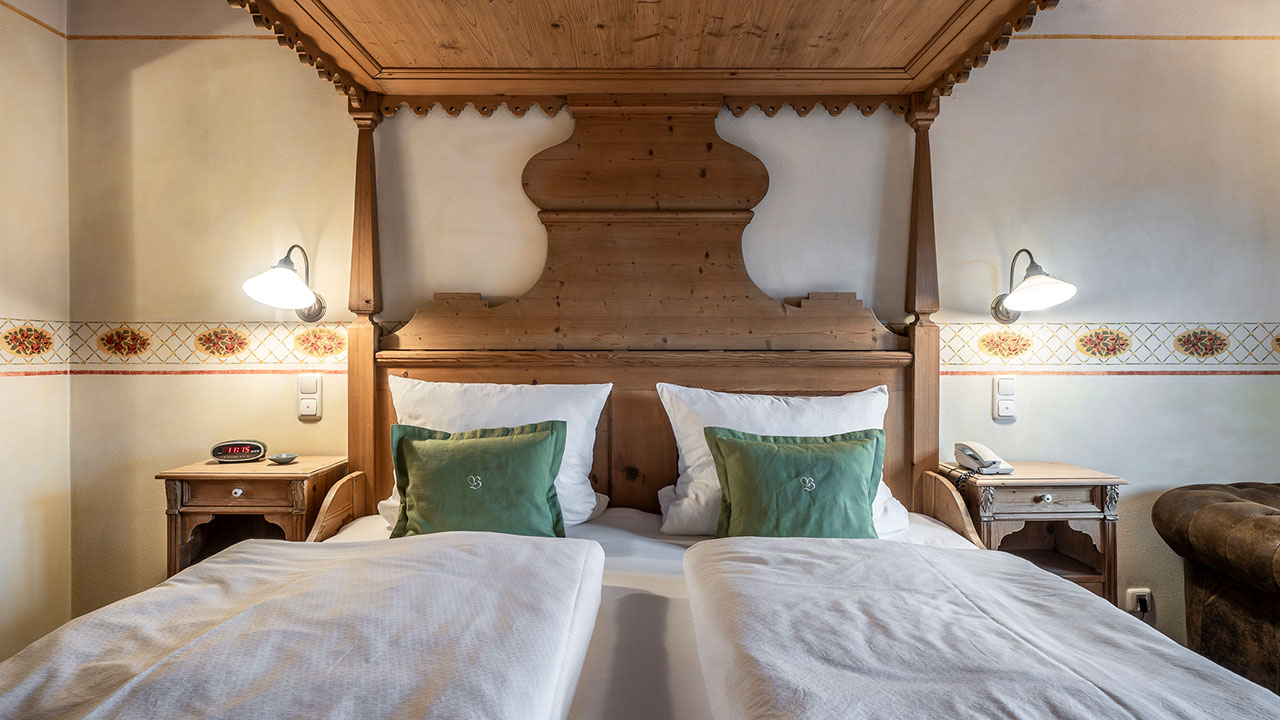 Dieses Doppelzimmer lädt zum Verweilen ein – mit sanften Grüntönen, warmem Holz und einem Himmelbett zum Träumen. Natürliche Farben und liebevolle Details schaffen eine wohltuende Ruhe, die Sie vom ersten Moment an spüren werden. Ein stilvoller Sekretär bietet Platz für kleine Gedanken oder Urlaubsgrüße an die Lieben. Ein Zimmer, das Geborgenheit schenkt – und Raum für echte Auszeiten.